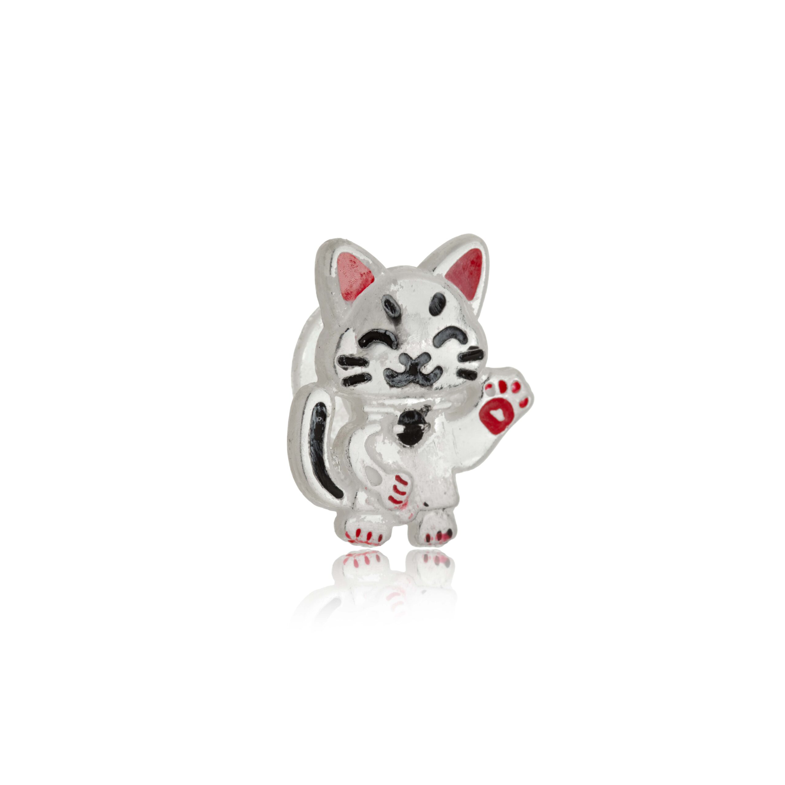 Pin modelo gato ouro com detalhes nas cores preto e vermelho