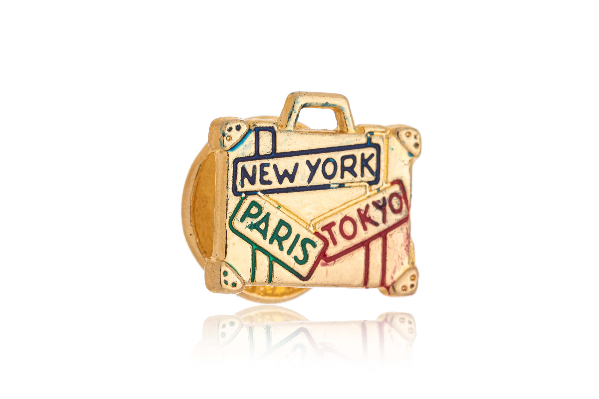 Pin modelo mala de viagem com alguns detalhes em escrita